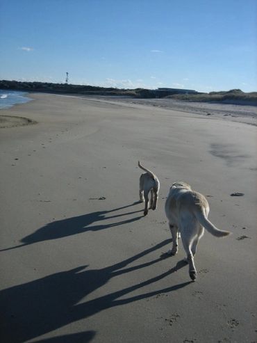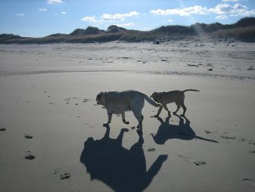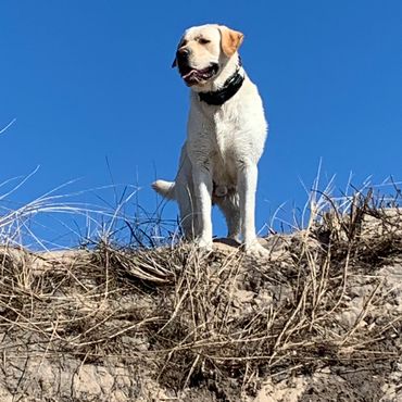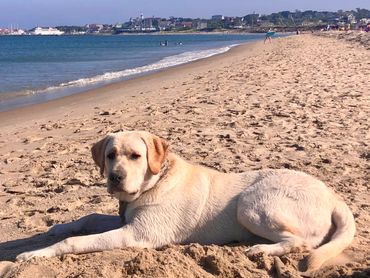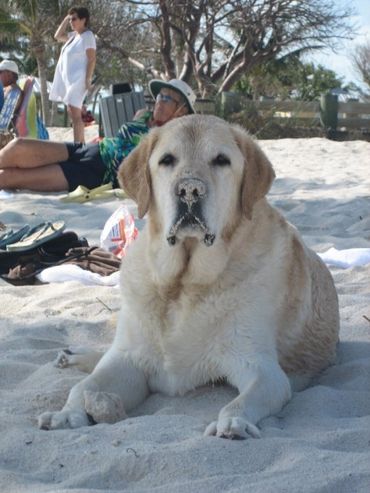 The real dog didn't come until a year after the naming of the shop but it seemed only fitting that the yellow lab, the stores mascot, be named Salty. Salty spent his days on the porch of the shop in the summer and visitors used to make a trip just to see him and give him a treat. We came up with the Salty Dog logo in 1997 after many requests for a shirt with a picture of Salty on it. Salty lived a full life. When he eventually passed we got another yellow lab named Otis. Today the Salty Dog is named Jake. Come by the shop to meet Jake and maybe give him a treat a grab a souvenir!